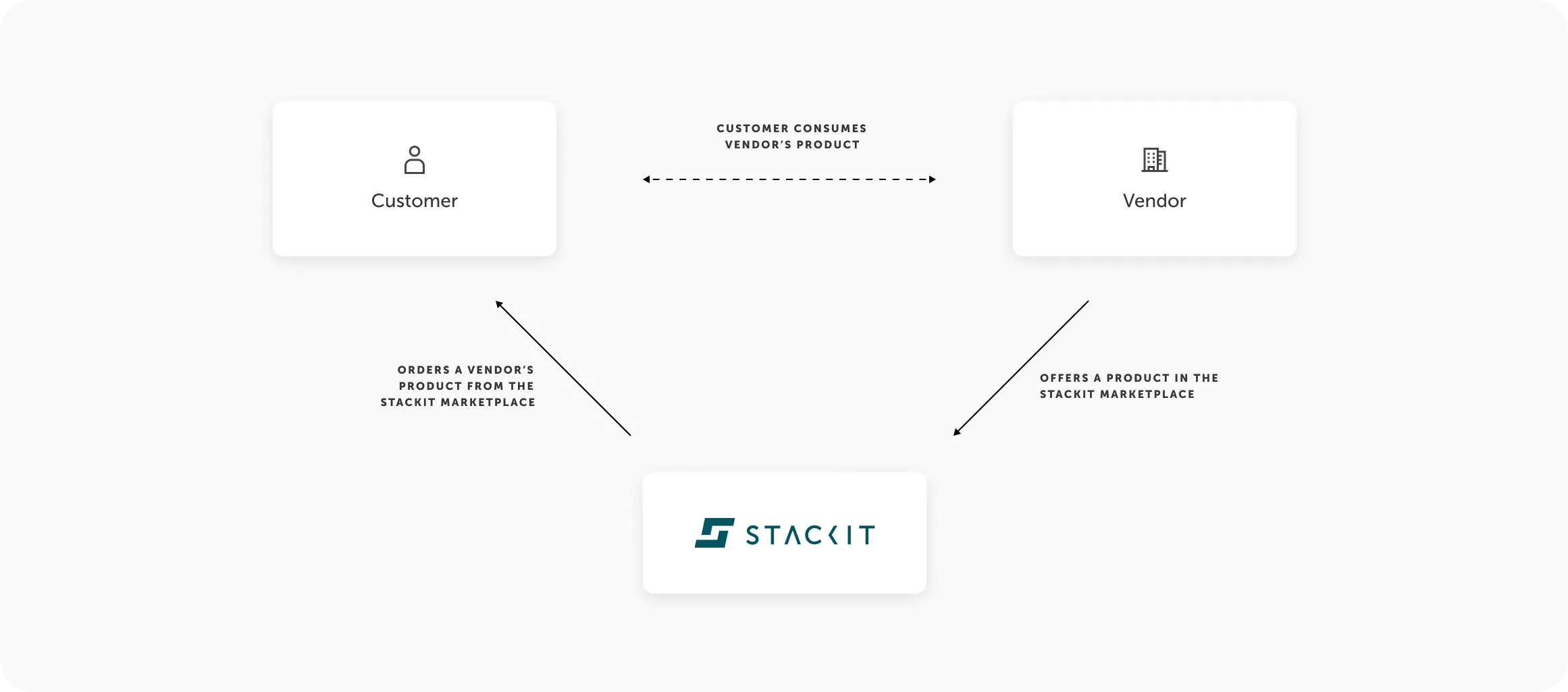 Abschnitt betitelt „Abrechnung“Kunden erwerben Ihr Produkt über den STACKIT Marketplace und wählen ein Vertragsmodell aus, falls Sie mehrere anbieten. Die Messung und Abrechnung der Produktnutzung werden durch programmgesteuerte Anfragen (API-Aufrufe) Ihrer Software initiiert. Als Best Practice empfehlen wir, die API so zu konfigurieren, dass sie idealerweise stündlich eine Nutzungsnachricht sendet.
