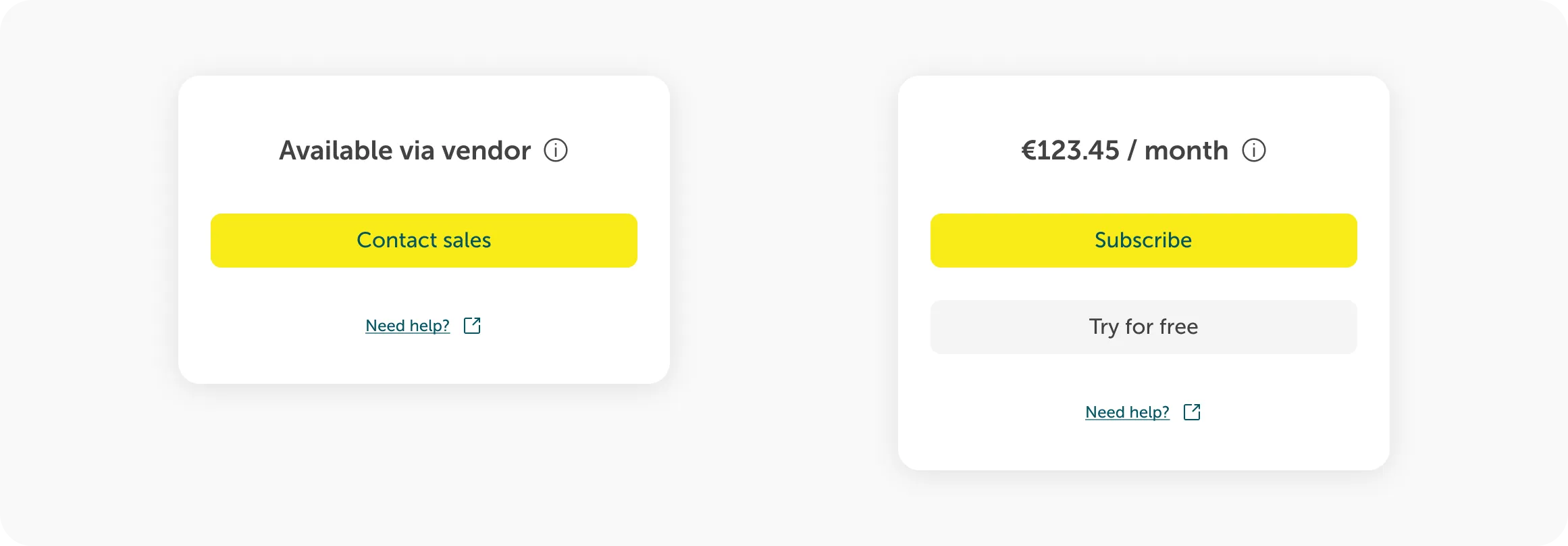 Links - gelistetes Produkt, das über den Vertrieb verfügbar ist, rechts - vollständig integriertes Produkt, das direkt über den Marketplace gekauft werden kann.