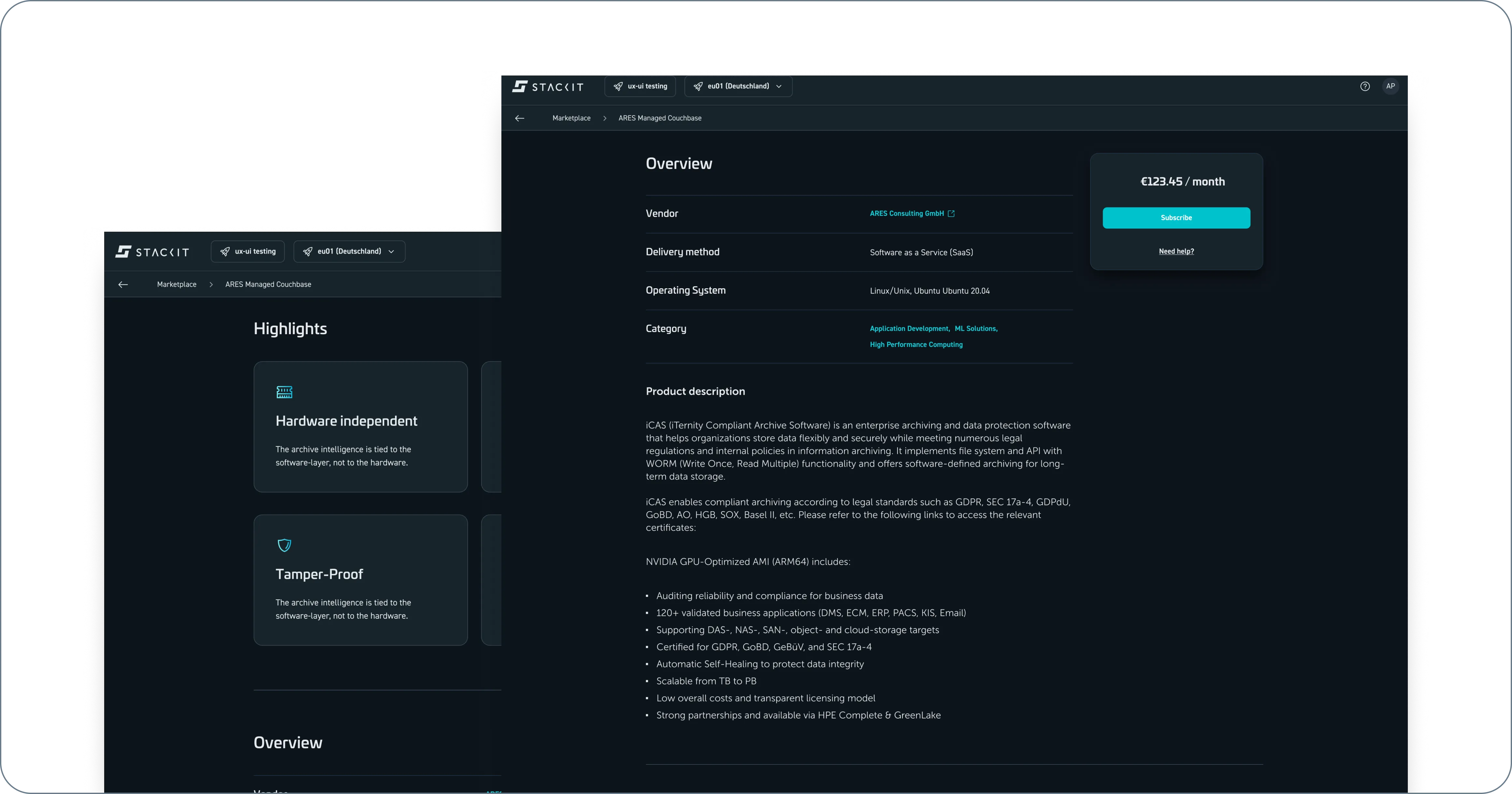 Highlights and product description of a product in the STACKIT Marketplace.