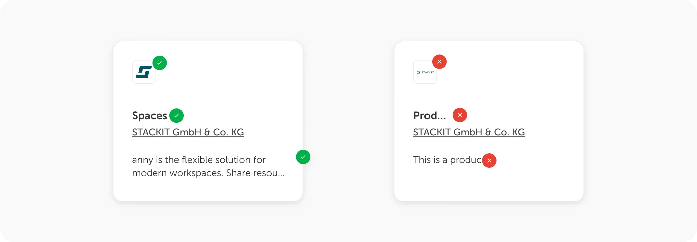 left - product tile contains a clearly visible logo and appealing, clear information, right - logo is poorly visible, labels are too generic.