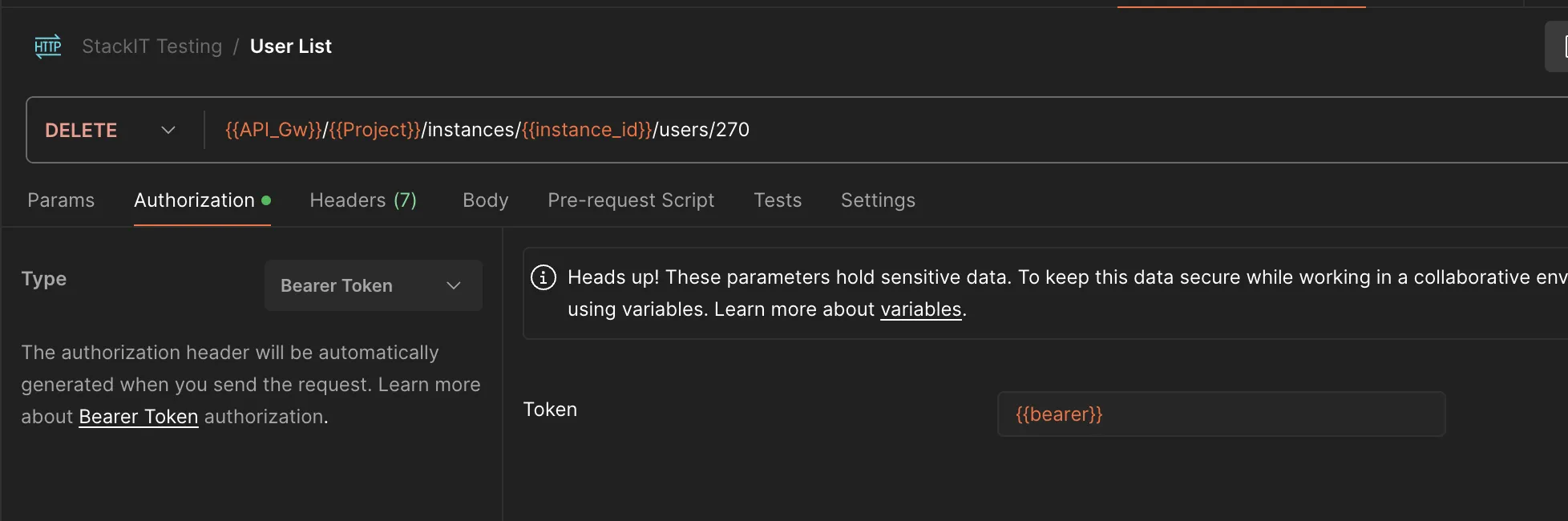 **DELETE**https://mssql-flex-service.api.eu01.stackit.cloud/v2/projects/{PROJECT_ID} /regions/{REGION}/instances/{INSTANCE_ID}/users/{USER_ID}and replace{PROJECT_ID},{REGION}and{INSTANCE_ID}with the project id, region id and instance id and{USER_ID}is the user ID you received in the previous step.