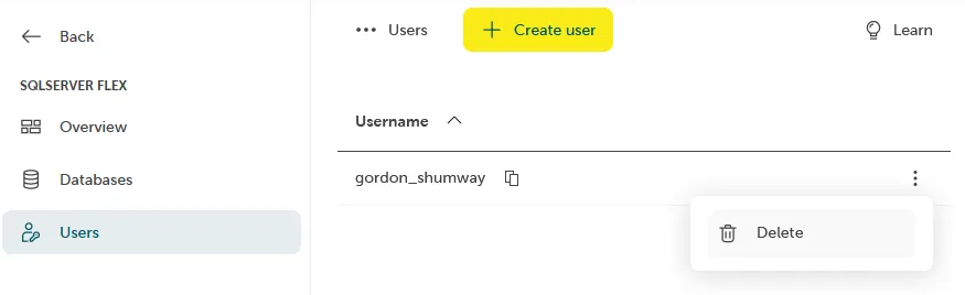 - In the list of users, open the ⋮ menu of the user you want to drop and select Delete.