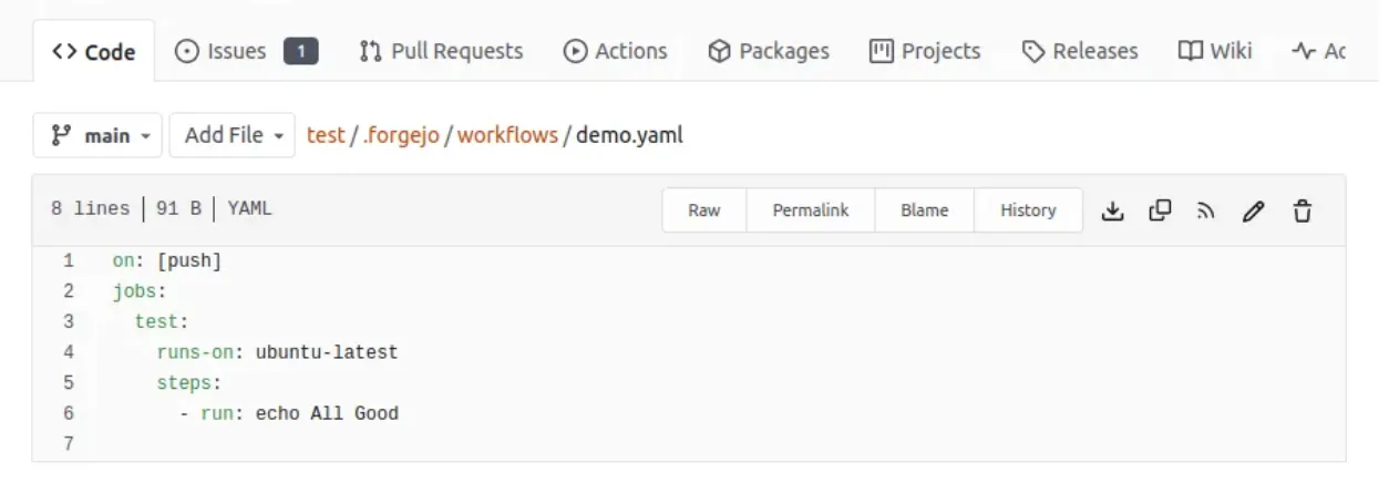 Section titled “Hierarchy”In STACKIT Git terminology a workflow is a .yml file in the .forgejo/workflows directory of the repository. A workflow has jobs with steps to be executed by a Action runner.
