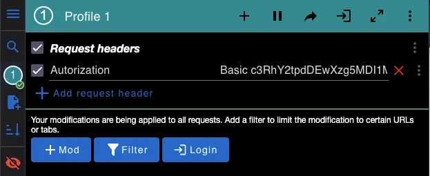 Section titled “Set Authorization header”After installing the ModHeader extension, we will do the following configuration:
