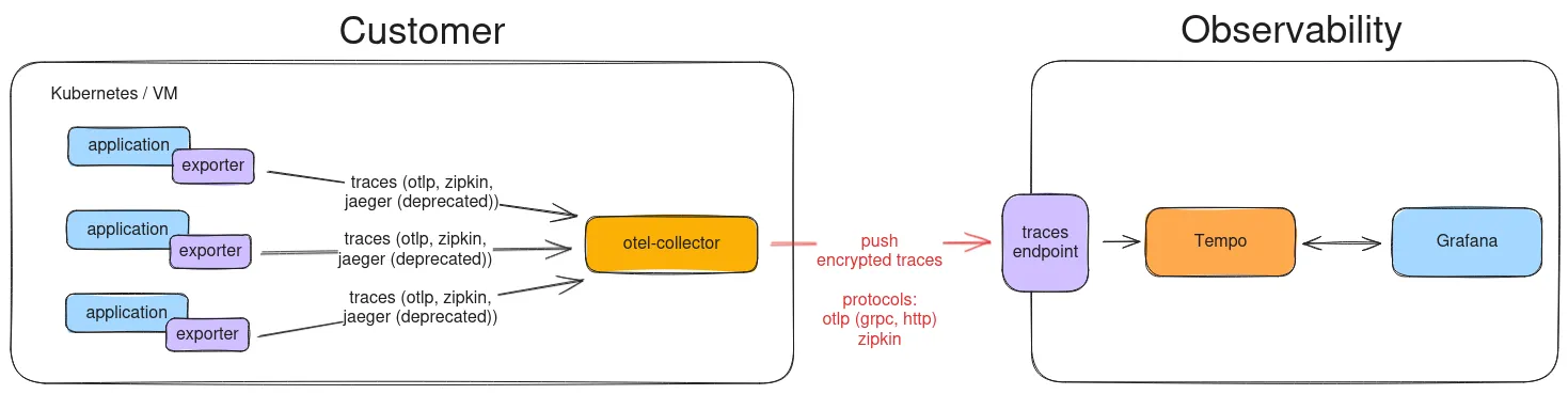 Section titled “The Tracing Data Flow”Traces follow a specific path from your application to the Tempo backend: