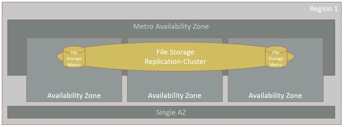 Every Resource Pool that is created in a Metro-Availability Zone (e.g. “eu01-m”) is located on a logical Storage System. These Storage Systems are replicated to another Availability Zone as well to ensure a very good availability of the service.
